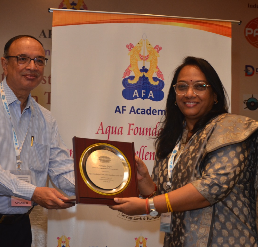 Mrs. Hemlata Gupta has been awarded the Dam Safety Professional Excellence Award in Individual category 2023 by the Aqua Foundation. This award recognizes her contributions to the field of dam design, she was involved in more then 30 dams and more than 10 dams are already constructed, Her innovative ideas and timely completion of the project gives tremendous boost to field of Hydro sector. She is continuously contributing in the construction and safety in a long and challenging career of 26 years.